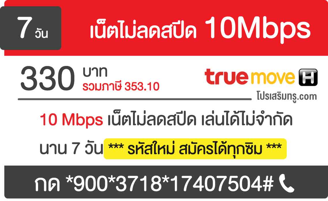 สมัครเน็ตทรู 7 วัน ไม่อั้น ไม่ลดสปีด 10mbps 330 บาท 3718